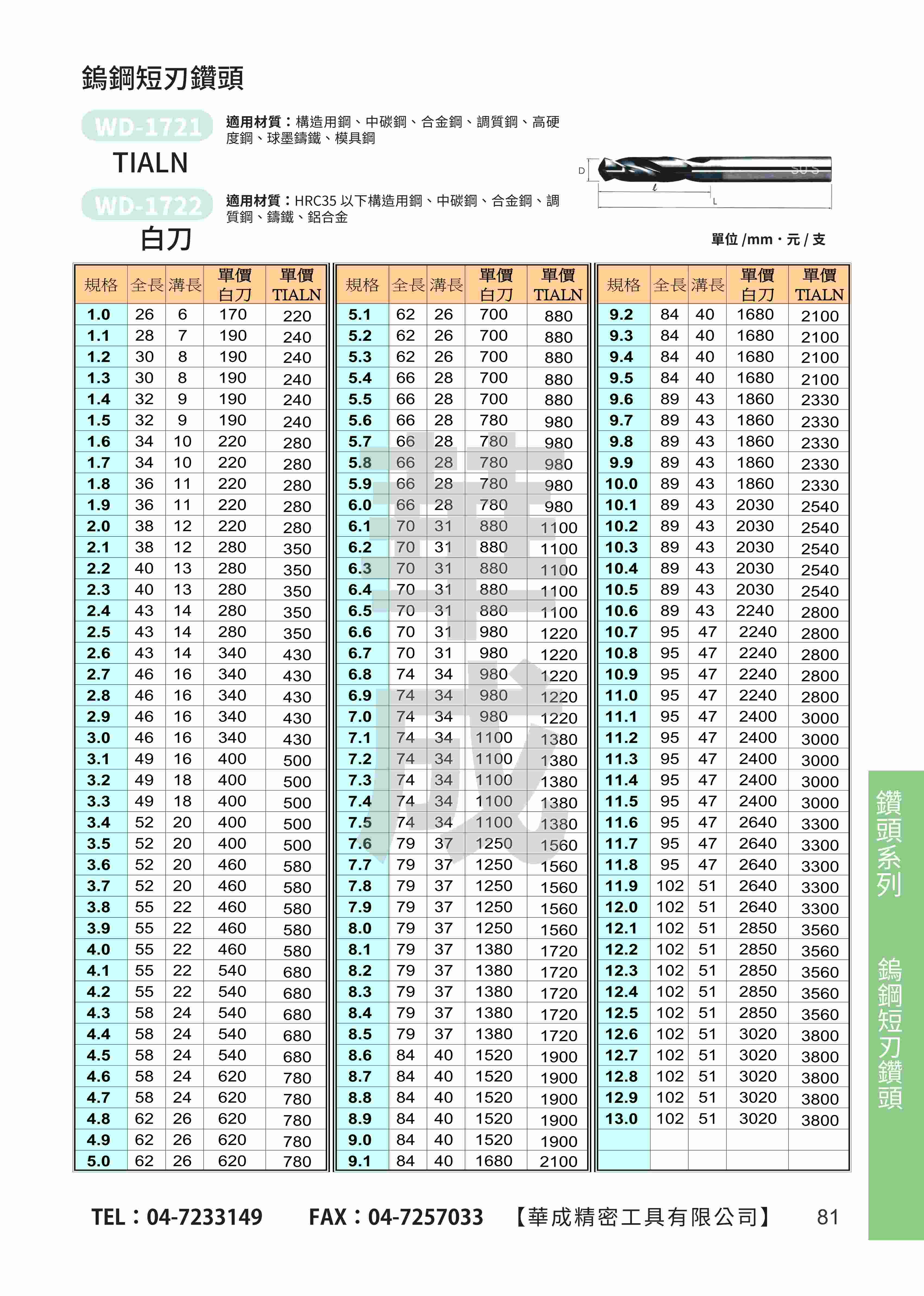 銑刀柄鑽頭(點數規格1.01~5.99)